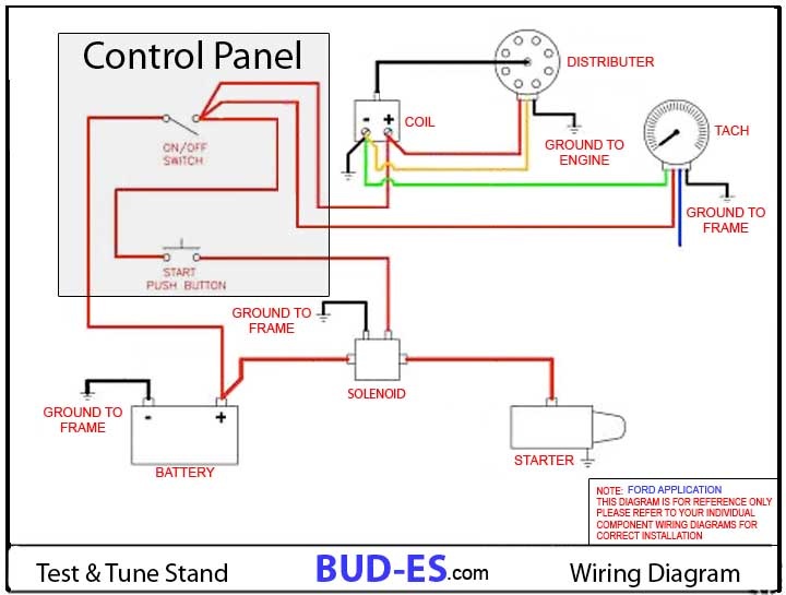 The image posted below is the small block ford version of our control panel wiring. This is a non- EFI system. Many other applications will be similar if you can identify the proper hardware and it's relation to the illustrated system. The tachometer hook up is optional and not included on the basic Test/Tune Stand package. Contact us for futher assistance if needed.
